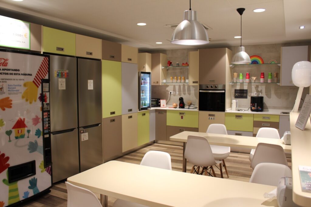 Para hacer frente a esta horrible y, por desgracia, frecuente situación y cambiarla de manera radical, existe la Sala Familiar Ronald McDonald en el hospital Virgen de la Arrixaca de Murcia, el centro hospitalario de referencia en pediatría en la Región de Murcia. Eva Conesa, su coordinadora, explica que este espacio es “un centro de día que abre doce horas al día, con 160 metros cuadrados de superficie en los que contamos con cocina totalmente amueblada, comedor, sala de estar con televisión, sala de trabajo con ordenadores con wifi, zona de juegos para los hermanos de los niños ingresados, zona de descanso y lactancia, cuartos de baño, taquillas e incluso lavadora-secadora”.